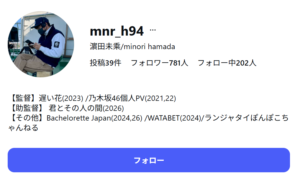 また、濱田さんのインスタによればBachelorette Japan(2024,26)と記載があるので、バチェロレッテ新シーズンの4作目のディレクターもされていると予想されます。